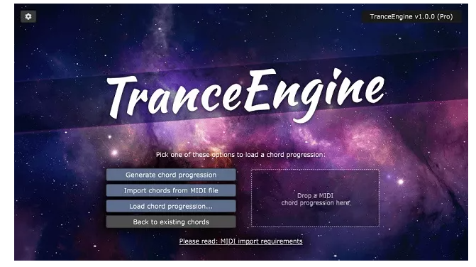 打开插件并导入您的MIDI和弦进展.或者让TranceEngine为您生成一个和弦行进.