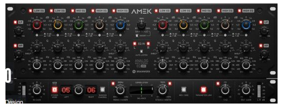 AMEK EQ 200 插件是一个完整的 7 频段均衡器,具有 5 个参数频段,以及添加的高通和低通滤波器。它以立体声、双单声道、单声道和 M/S 模式运行。五个宽的重迭均衡器频段中的每一个都提供高达 15 dB 的升压或切断,以及 0.4 至 4 的可调带宽(或“Q”)控制。最低和最高波段也可以切换到搁架模式。